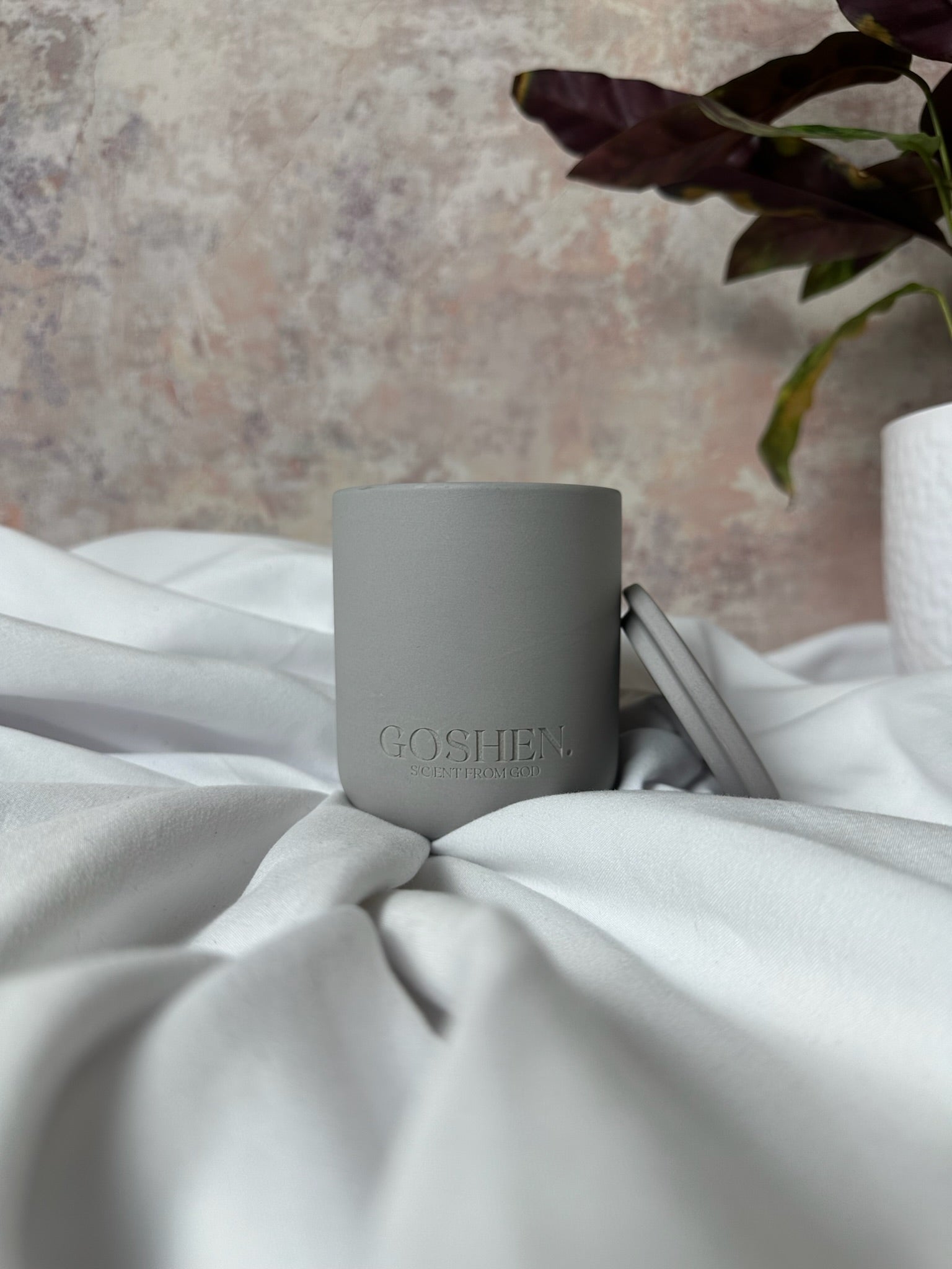 Egyptian Amber, now captured in a timeless grey ceramic jar that seamlessly complements any aesthetic.